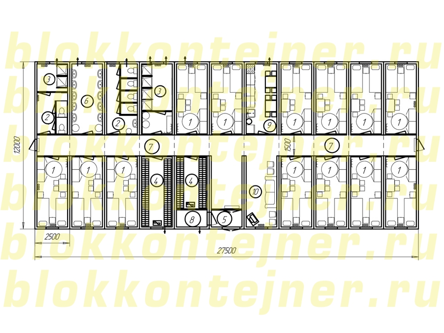 Модульное здание «Общежитие для рабочих на 52 человека»